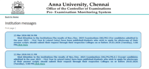 Anna University also released the distance educations results for August/September 2025 examinations and special examinations on 9th March 2026. Students seeking photocopy of their responses were given a deadline till 15th March 2026. Here is the official notification: