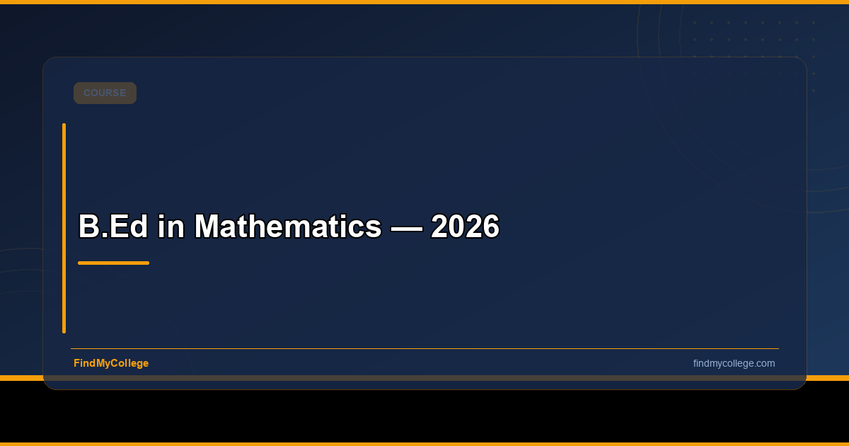 B.Ed in Mathematics is a 2-year teaching program in India (2026), serving as a base requirement for teaching in many reputed schools. This degree trains quality educators with a positive attitude towards learners, preparing them for elementary, secondary, and senior secondary education levels.