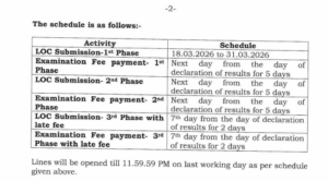 The notice for LOC window opening for CBSE class 10th second board exam 2026 was released on 17th March 2026. It informs that the window will open in three phases : First phase (18th – 31st March 2026), Second phase (Next day after the declaration of results for 5 days), Third phase (7th day from the CBSE class 10th result date for 2 days). The fee payment window, however, will only open after the CBSE 10th board result 2026 is announced. Take a look at the schedule below: