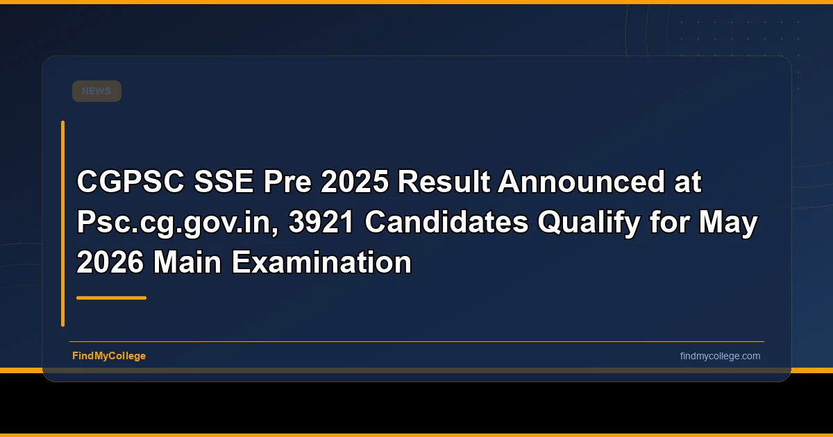 CGPSC SSE Pre 2025 result announced at psc.cg.gov.in, 3921 candidates qualify for May 2026 main examination