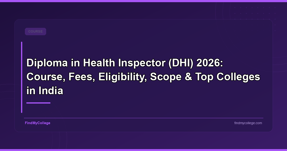 Diploma in Health Inspector (DHI) 2026: Course, Fees, Eligibility, Scope & Top Colleges in India