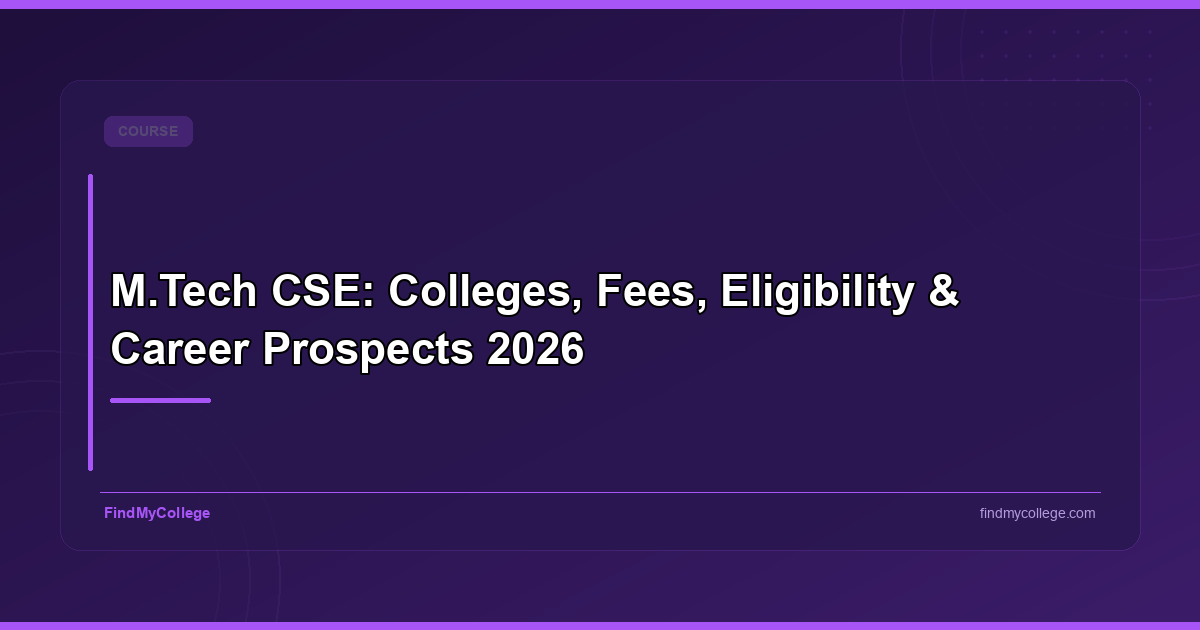 M.Tech CSE: Colleges, Fees, Eligibility & Career Prospects 2026