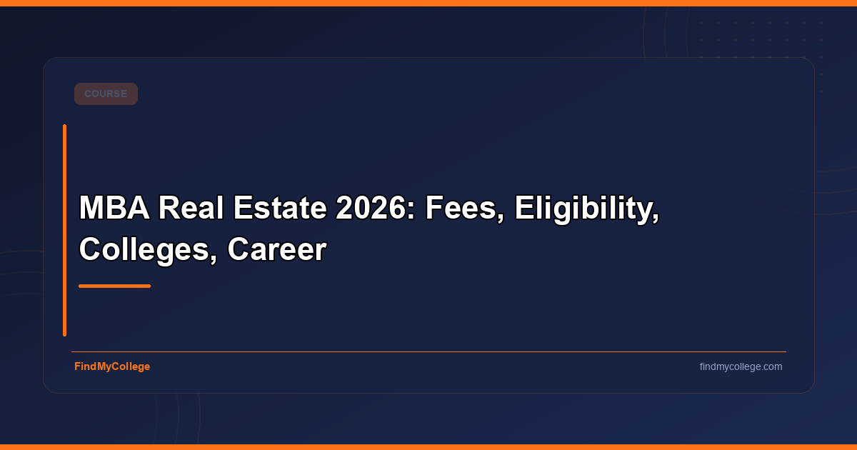 MBA Real Estate 2026: Fees, Eligibility, Colleges, Career