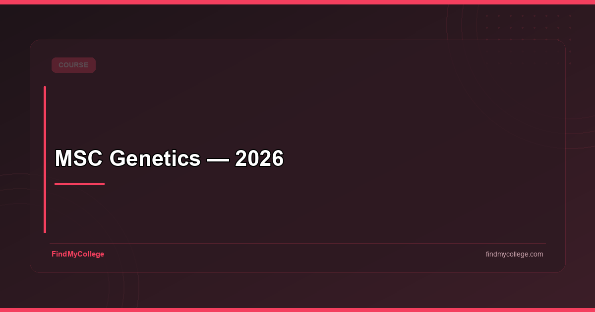 MSc Genetics is a 2-year full-time program. Fees range from ₹5,000/year (government colleges) to ₹2 lakh/year (private institutions) as per 2026 data.
