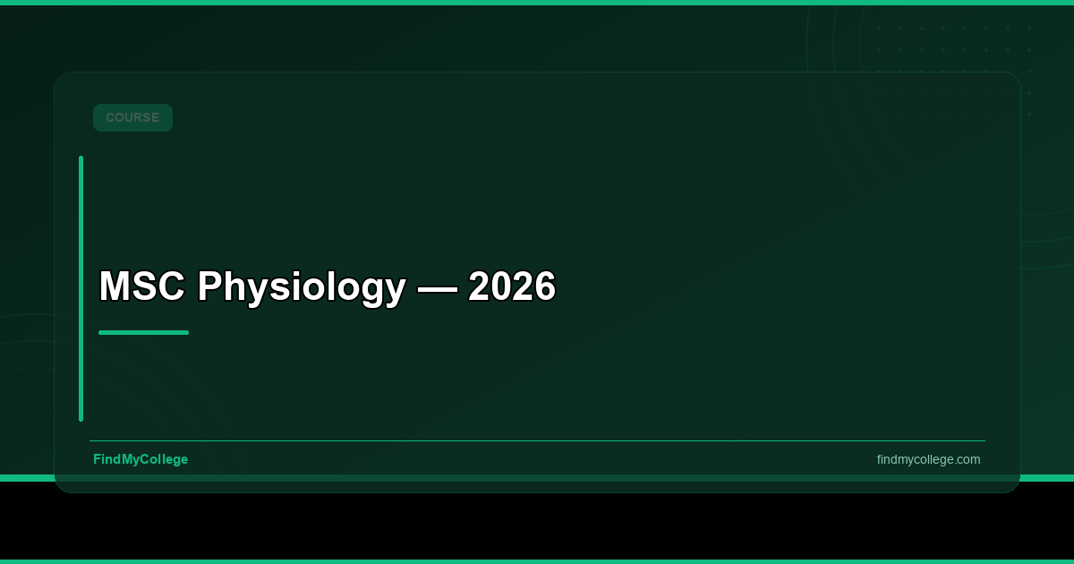 - **Prepare for Entrance Exams:** Many institutions, including central universities, use entrance exams like CUET PG, NEET PG, INI CET, MET, BHU PET, IIT JAM, and DUET for MSc Physiology admissions. CUET PG 2026 registrations open on December 14, 2026, and close on January 14, 2026.