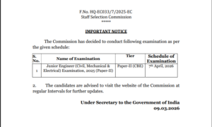 The Staff Selection Committee (SSC) on March 9th, 2026 announced the schedule of Junior Engineer (JE) Examination Paper 2. The JE exam paper 2 is scheduled to be held on April 7th, 2026. Candidates who qualified the Paper 1 level are eligible to appear for this Computer-Based Test. SSC JE examinations are held to fill engineering vacancies in Central Government departments.Â